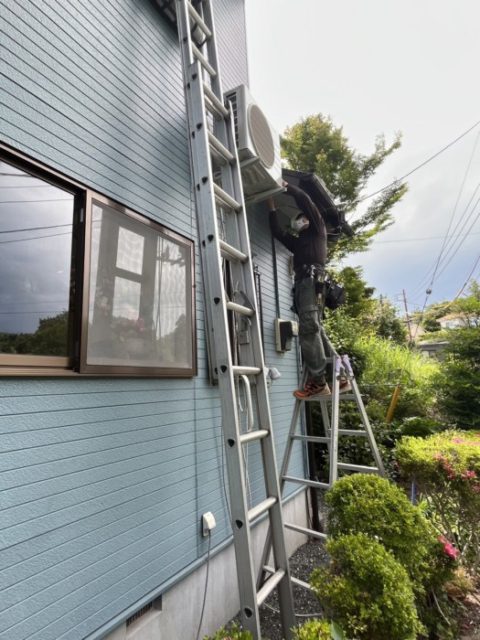作業員も二名での作業となり、息を合わせないとお客様の大切な家に傷がついてしまったり、作業中に転落してしまう恐れがあるので気を付けないといけません。